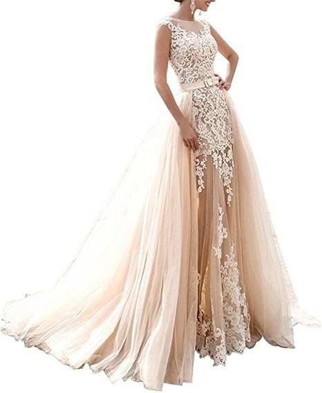 Champagne Open Back Beaded Lace Mermaid Bridal Dress Lunss