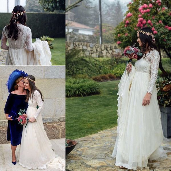 Discount Boho Wedding Dresses With Long Sleeve 2018 Modest Vintage