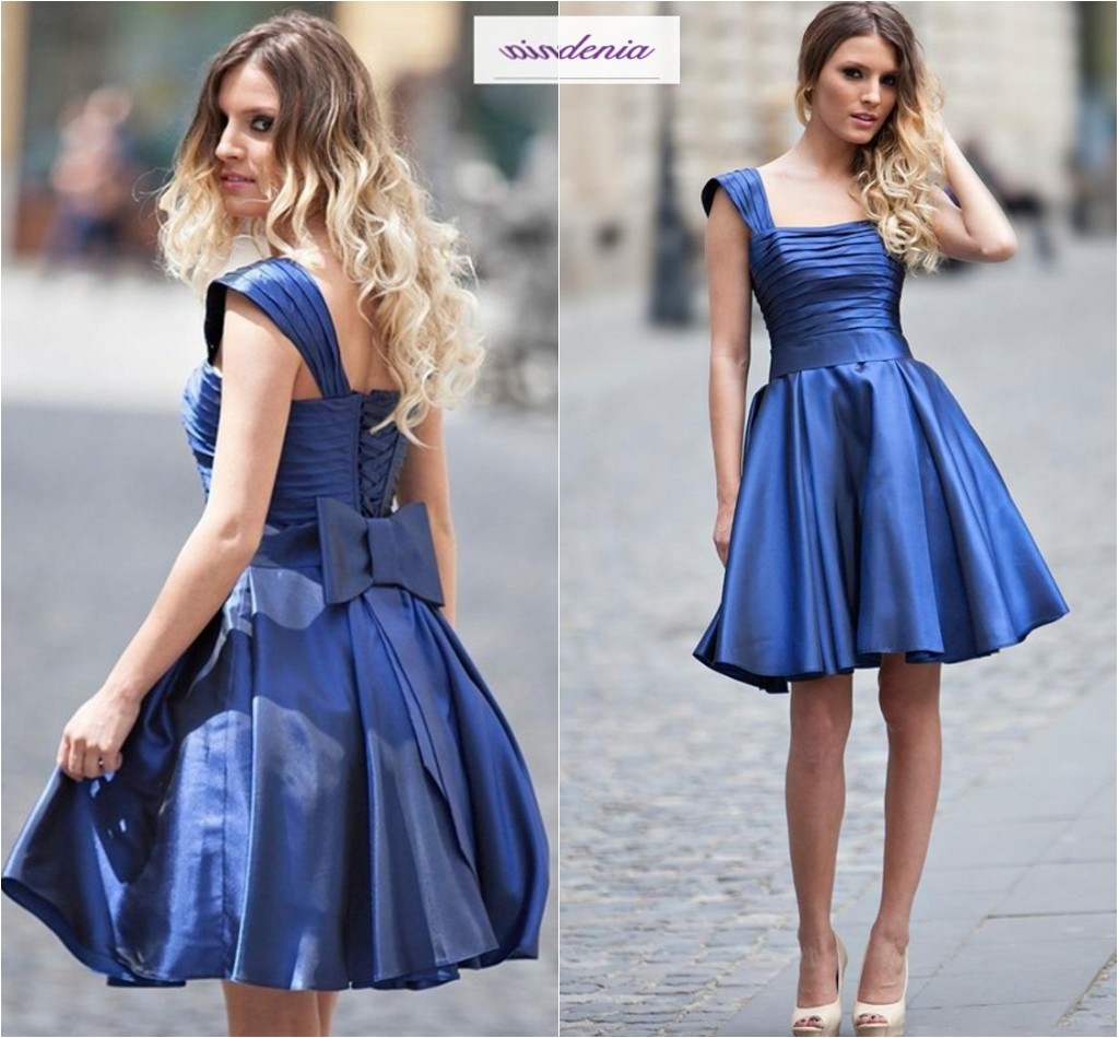 Blue Knee Length Short Party Dresses For Girls Lace Up Back Satin