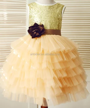 Gold Sequin Champagne Cupcake Tulle Wedding Flower Girl Dress