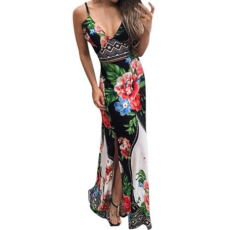 Amazon Com Sumlou Floral Print Sexy V Neck Dress Sleeveless Side