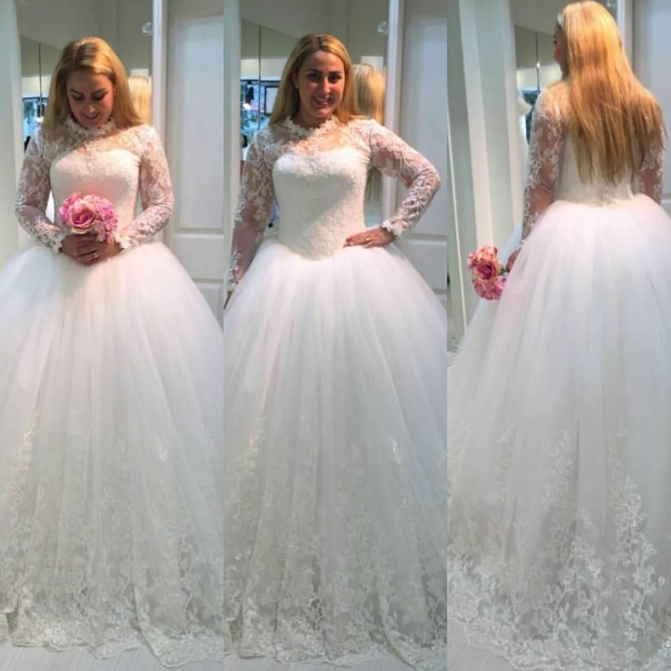 Luxury Wedding Dress High Neck Plus Size Lace Bridal Gown