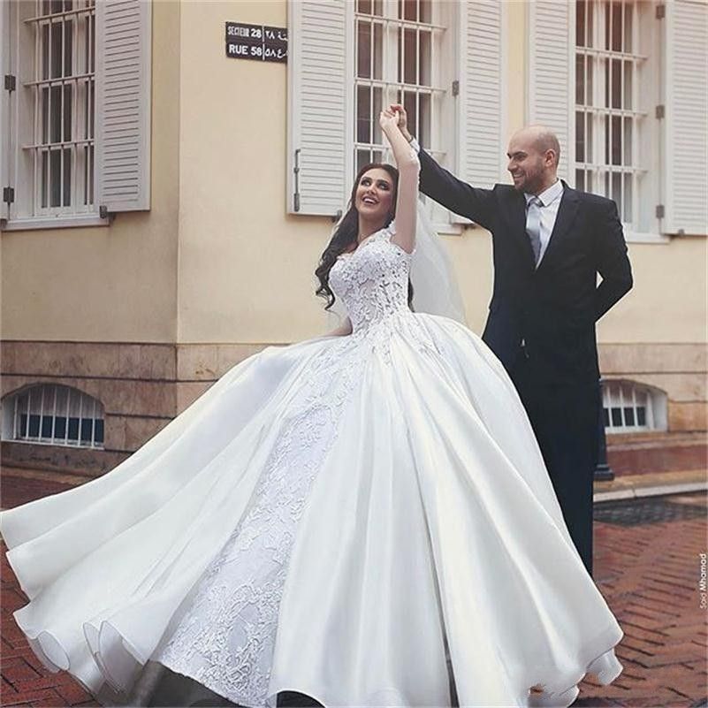 2018 New Cheap Puffy Ball Gown Wedding Dresses Sheer Long Sleeves
