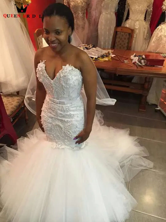 Luxury Wedding Dress Crystals Lace Long Train Wedding Bride Gowns