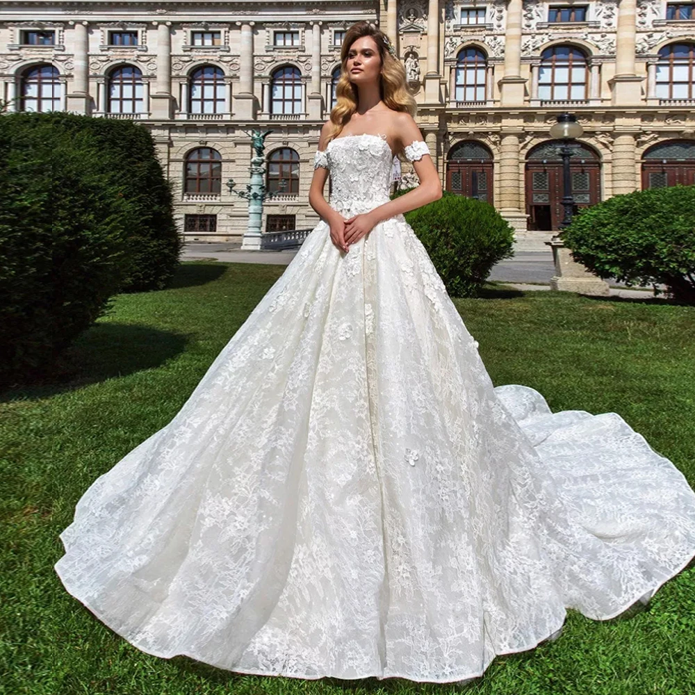 Buy Round Neck Wedding Dresses Princess 3d Lace Women Dress