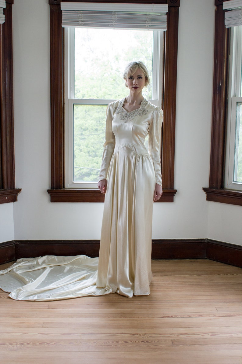 Vintage 1940 S Art Deco Satin Wedding Gown Old Hollywood Etsy