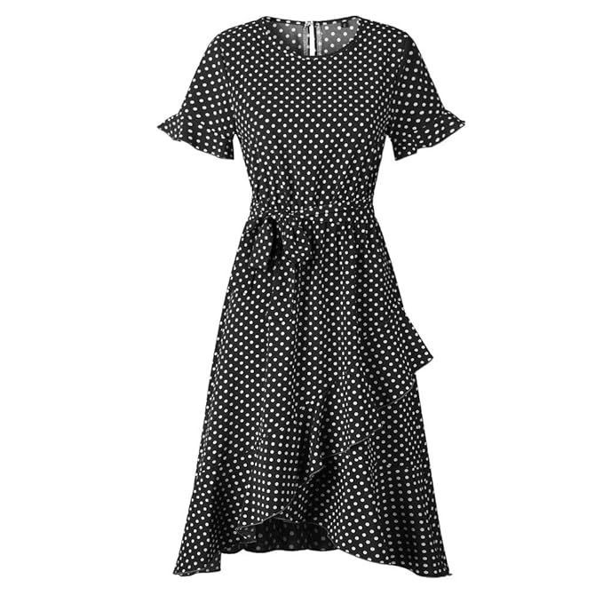 Women Dress Sexy Dot Printing Short Sleeve O Neck Dress Evening