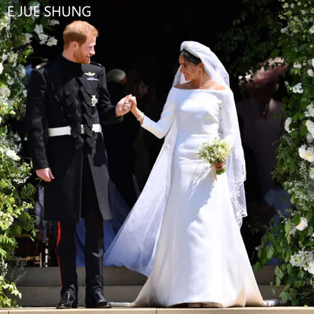 Royal Open Back Wedding Dress Long Sleeve Satin Wedding Gown Etsy