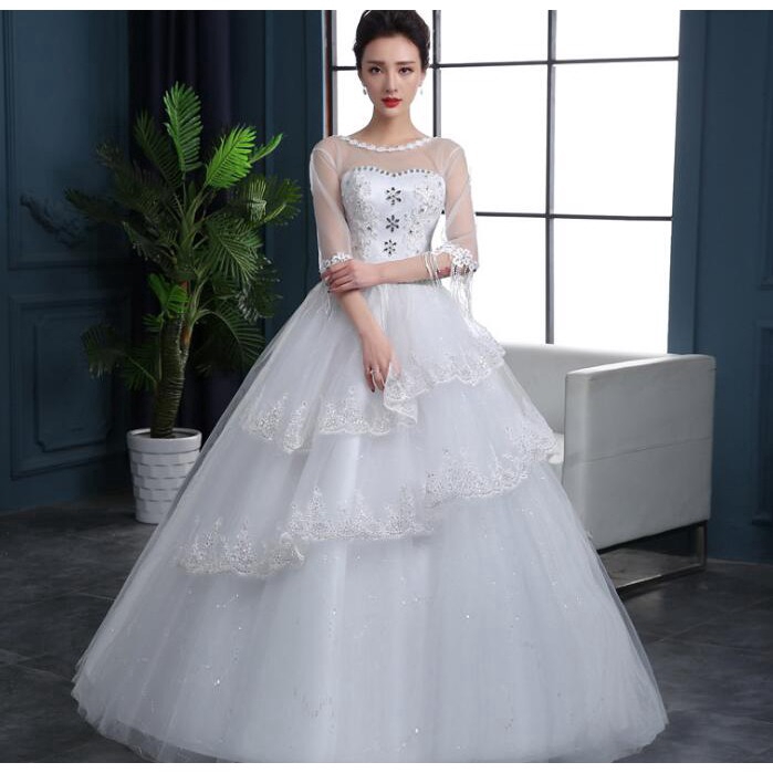 New Floor Length Wedding Dress Short Sleeves Lac Bridal Gown