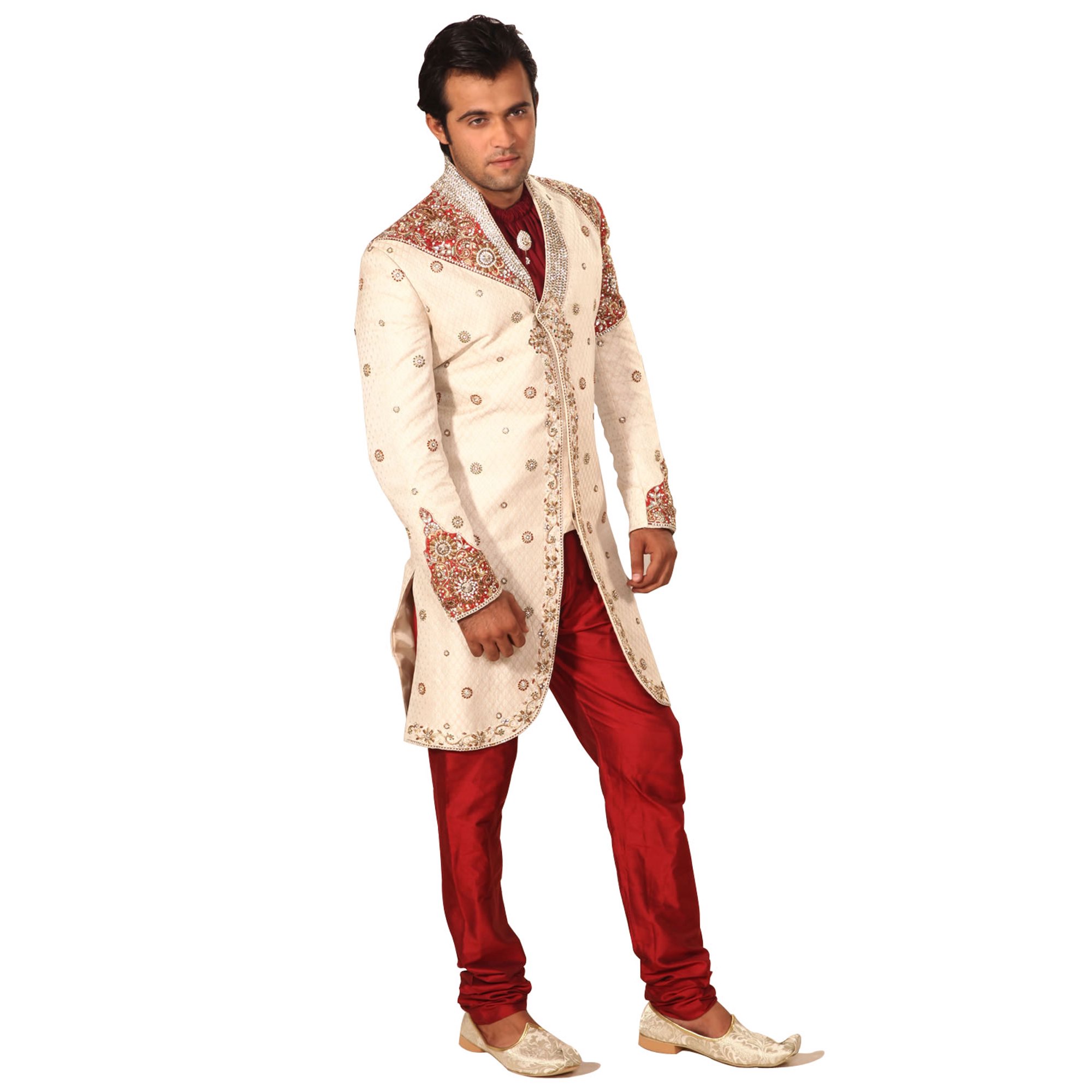 Modern Prince Styling Indian Wedding Cream Sherwani For Men This
