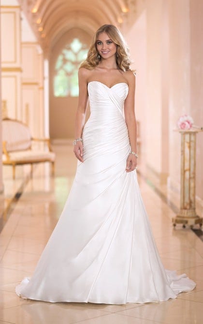 Go for a traditional strapless sweetheart look such as that of justin alexander style 88075. Fitted strapless wedding dress sweetheart neckline satin wedding dress with ruffles. Ruching wedding dress photos search our wedding photo gallery for thousands of the best ruching wedding dress pictures.