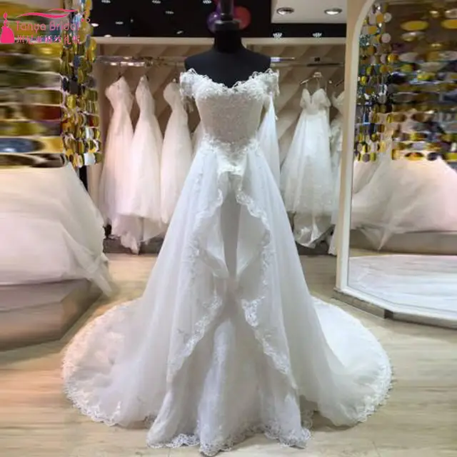 Modern Detachable Wedding Dress With Short Sleeves Fitted