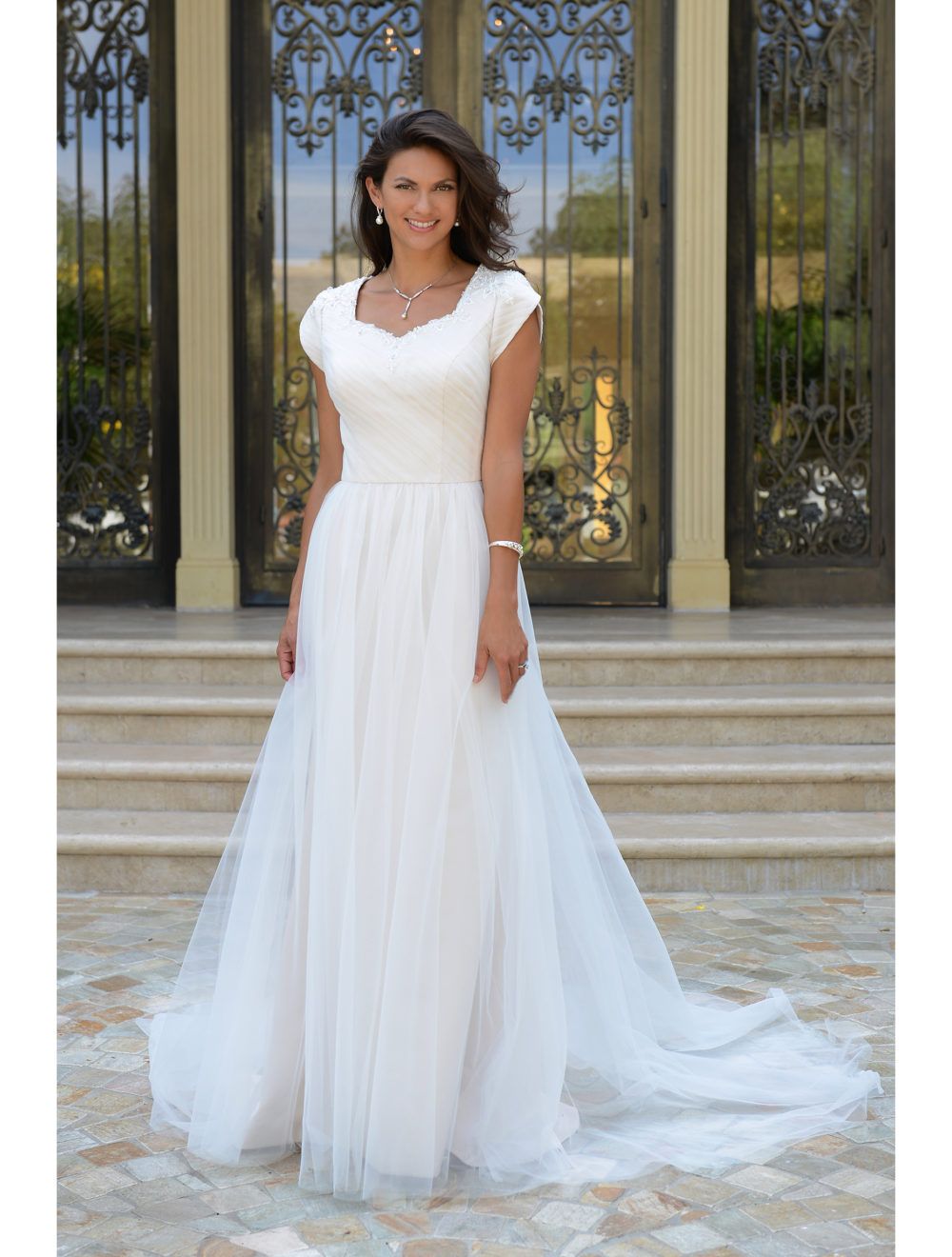 A Line Romantic Informal Tulle Modest Wedding Dresses With Short