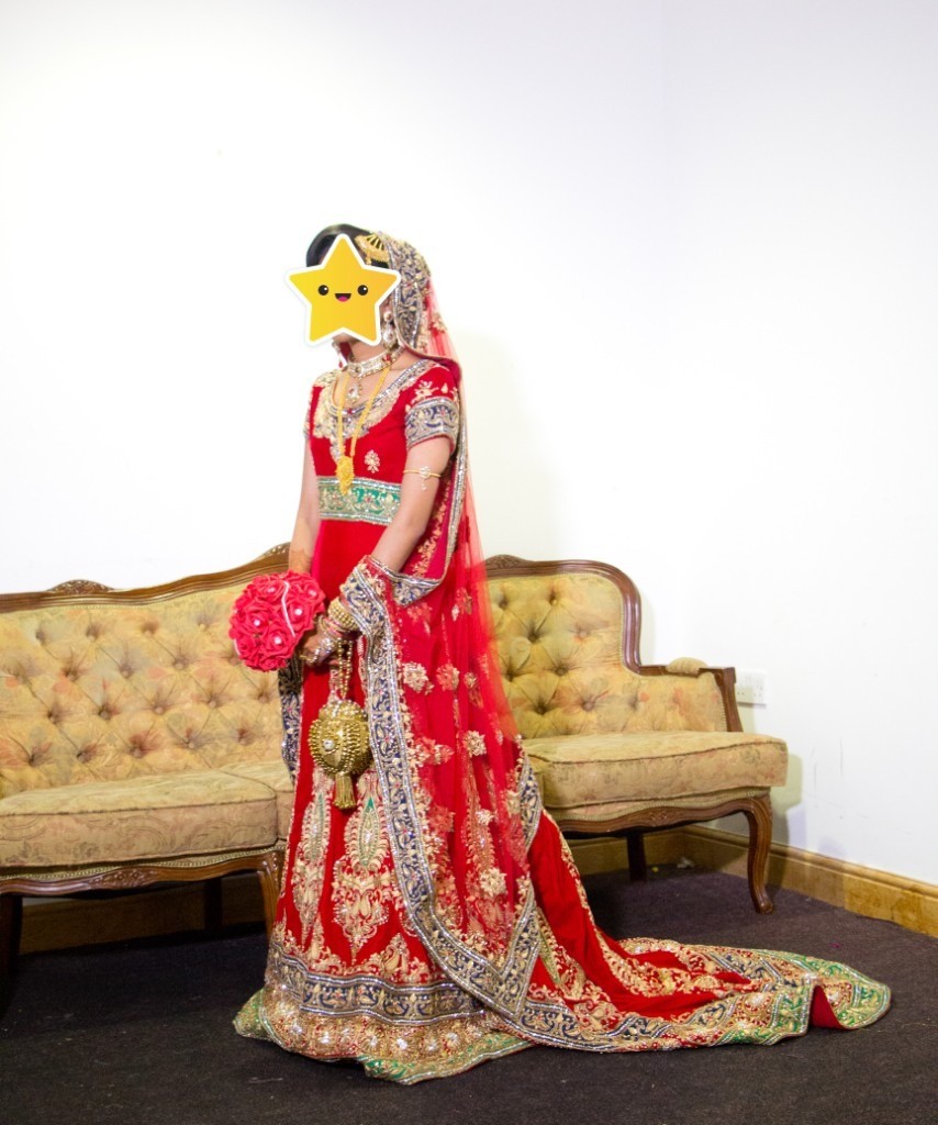 Red And Gold Wedding Dress With Green And Blue Borders Asian