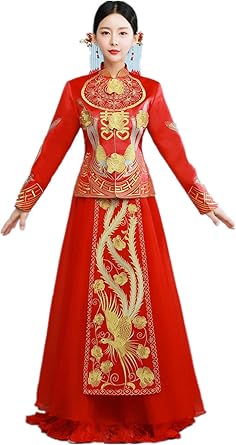 Amazon Com Gold Embroideries Show Wo Dress Chinese Wedding Dress