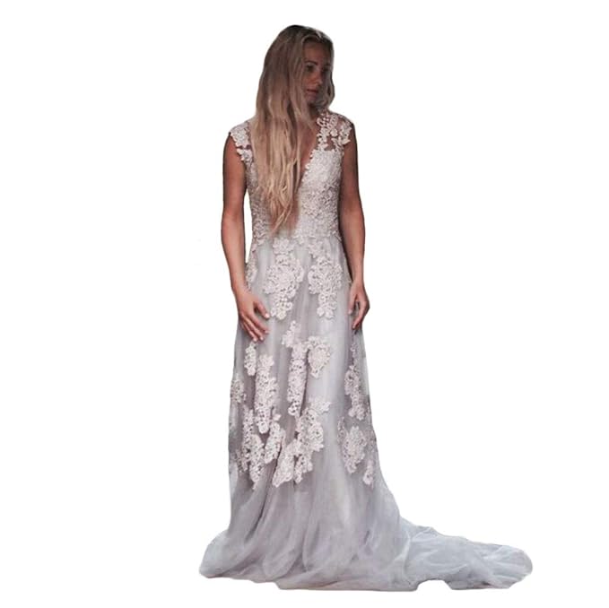 Tsbridal Women Vintage Lace Boho Wedding Dress Beach Lace Bridal