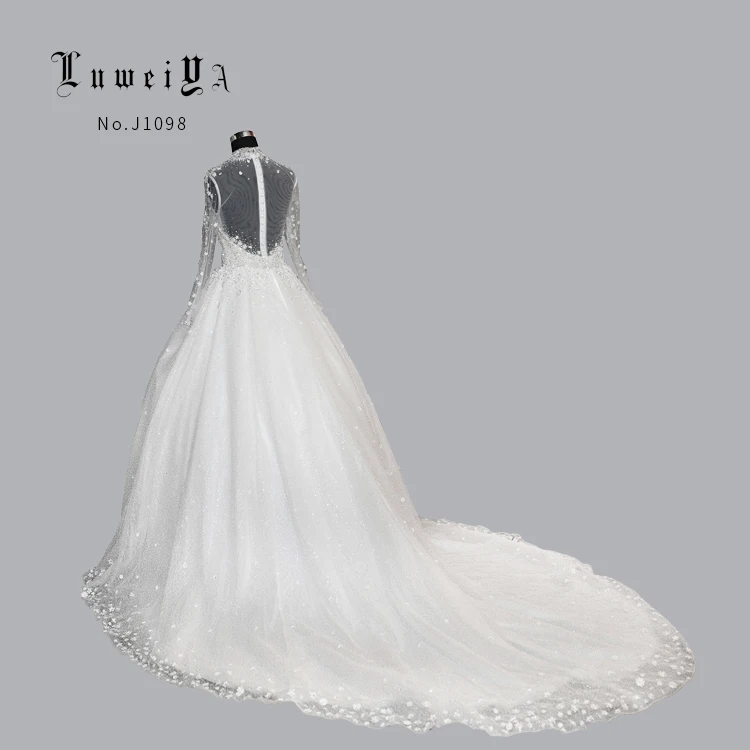 Vintage Long Sleeve High Neck Ball Gown Wedding Gown 07