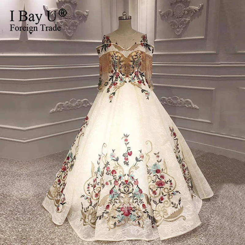 Vintage Embroidery Beaded Wedding Dress Satin Ball Gown Off