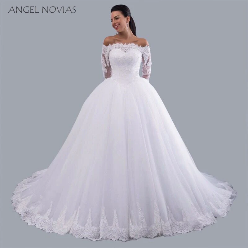 Angel Novias Long Sleeves Off The Shoulder Ball Gown Vintage