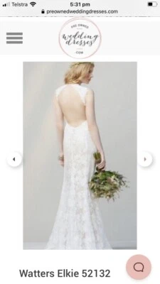 Watters Elkie Low Back Lace Wedding Dress Size 8 10 Wedding