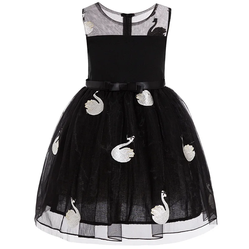 Girls Dress Pink Black Swan Embroidery Baby Dresses Princess