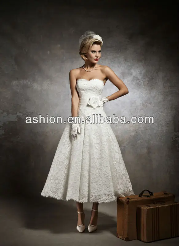 Free Shipping We 1629 Elegant Lace Overlay Tea Length Wedding