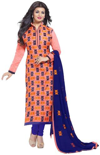 Buy Blissta Orange Chanderi Embroidered Wedding Dress Material