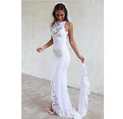 Hi Lo Short Front High Back Lace Mermaid Backless Wedding Dresses