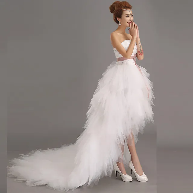 Detachable Train Wedding Dress Short Front Long Back Wedding Dress