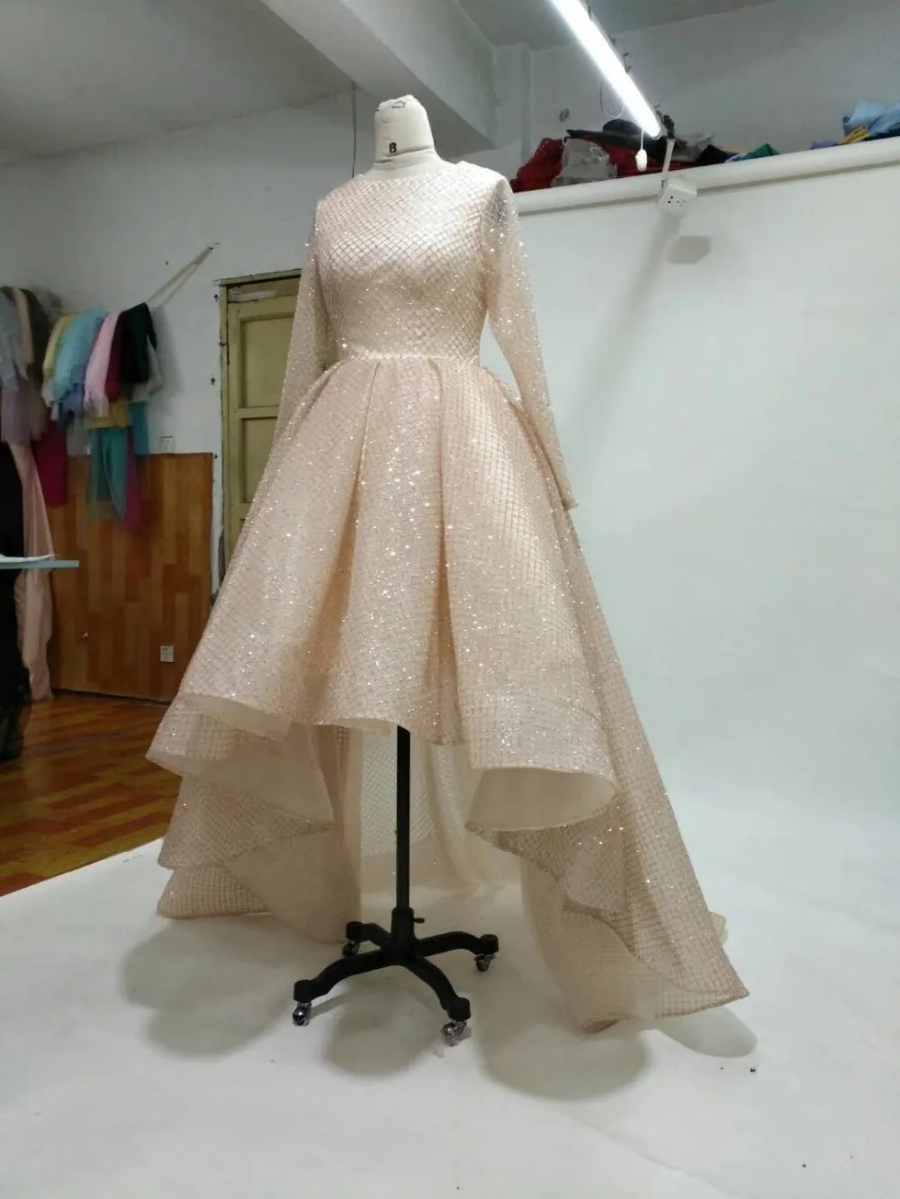 Cloverbridal Real Photos 2017 Fashion Gold Court Train O Neck