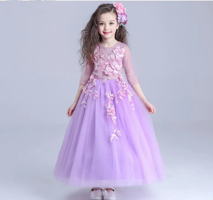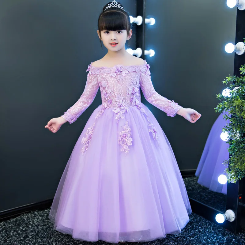 Purple Long Girls Dress For Wedding Fancy Angel Flower Girl