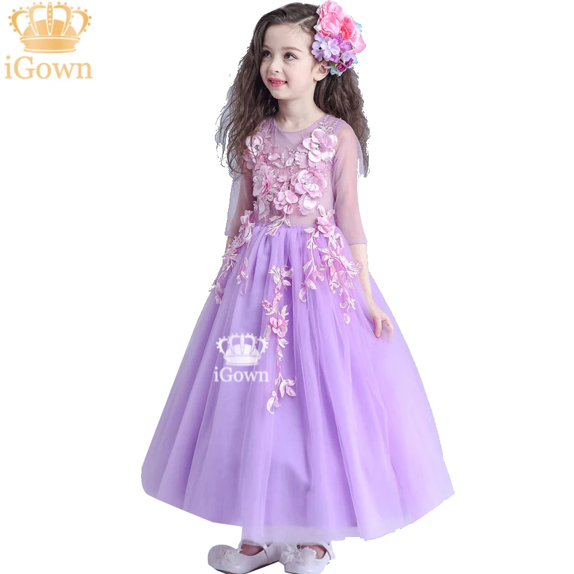Holy Flower Girls Dresses Violet Color Ball Gown With Dimensional
