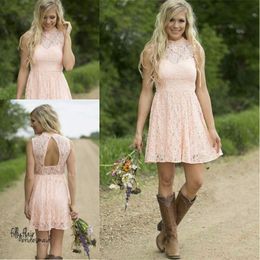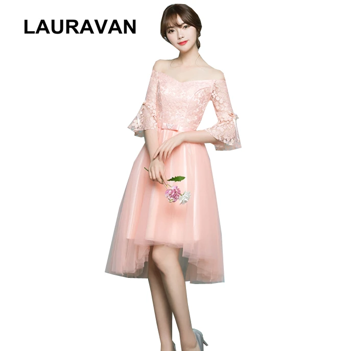 2016 Pink Lace Bridesmaid Dress Short Blush Elegant Dress Peach A