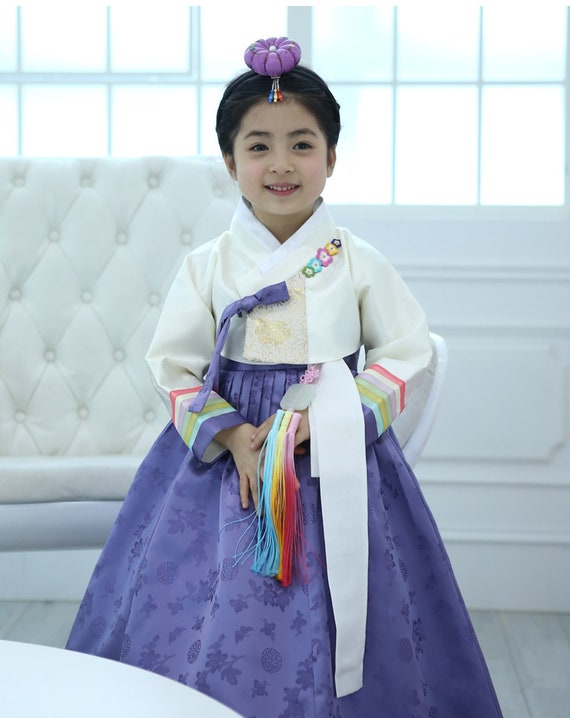 Ivory Purple Girl Hanbok Dress Baby Korea Traditional Clothing Etsy