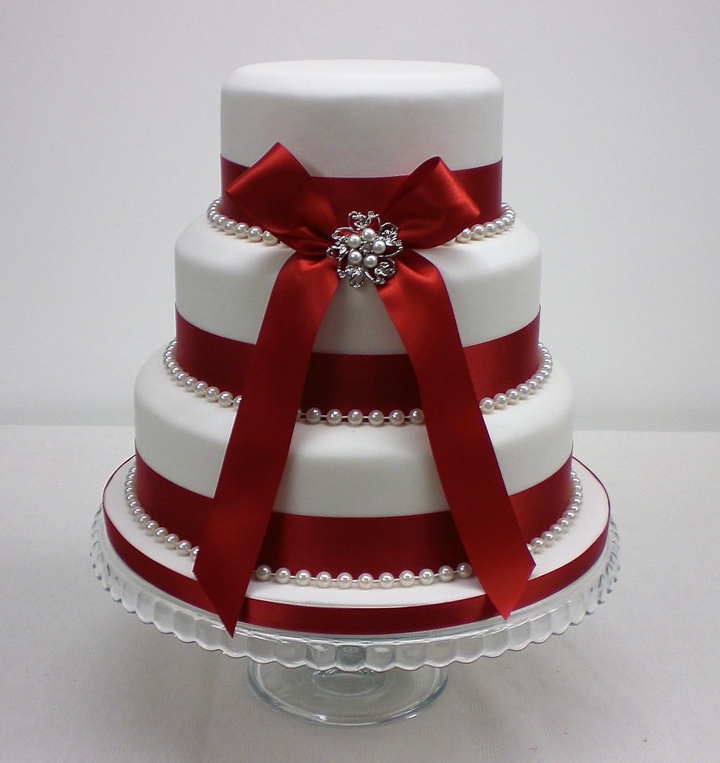 Wedding Cake Bridal Pearl Brooch Pearls And Red Ribbon Cake