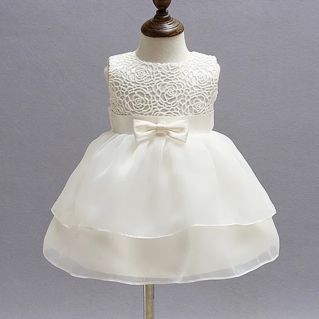 1 Year Old Baby Girl Dress Bow Beige Princess Birthday Formal