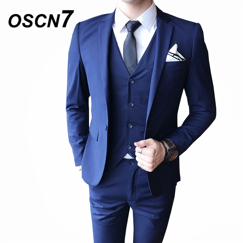Oscn7 Casual Business Plain 3 Piece Suit Men 2019 Wedding Dress