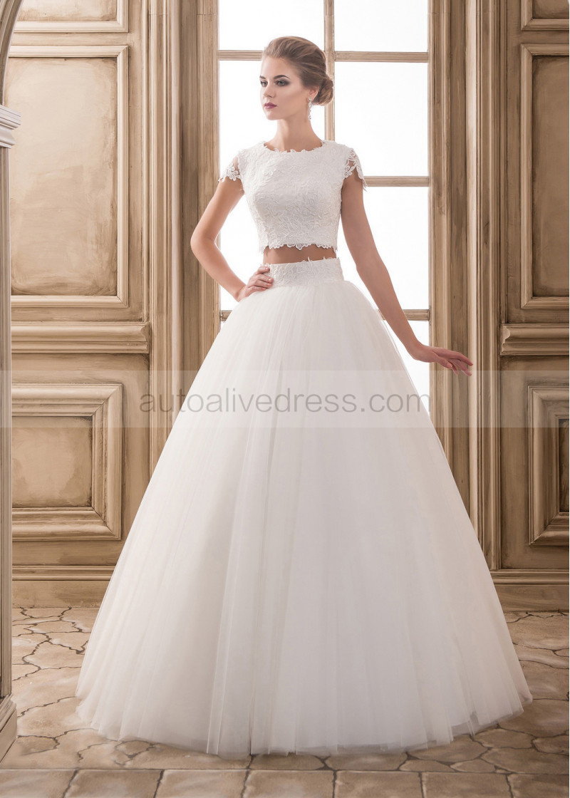 Cloverdress Beach Wedding Dresses Two Pieces Lace Tulle Bridal