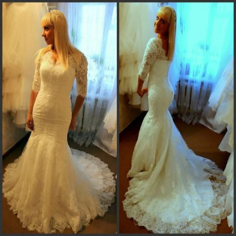 Plus Size Arabic African Traditional Bridal Gowns Half Sleeves