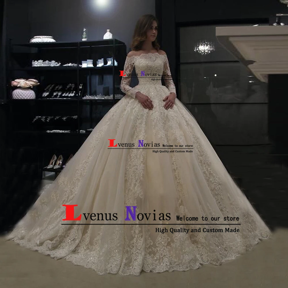 Vestido Novia Vintage Boat Neck Ball Gown Wedding Dresses 2019