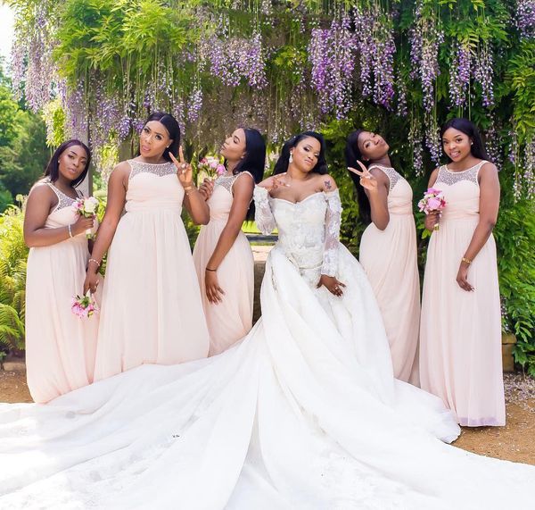 New Blush Pink Bridesmaid Dresses Pleated Floor Length Country