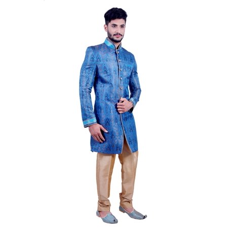 Evening Blue Indian Wedding Indo Western Sherwani For Men At