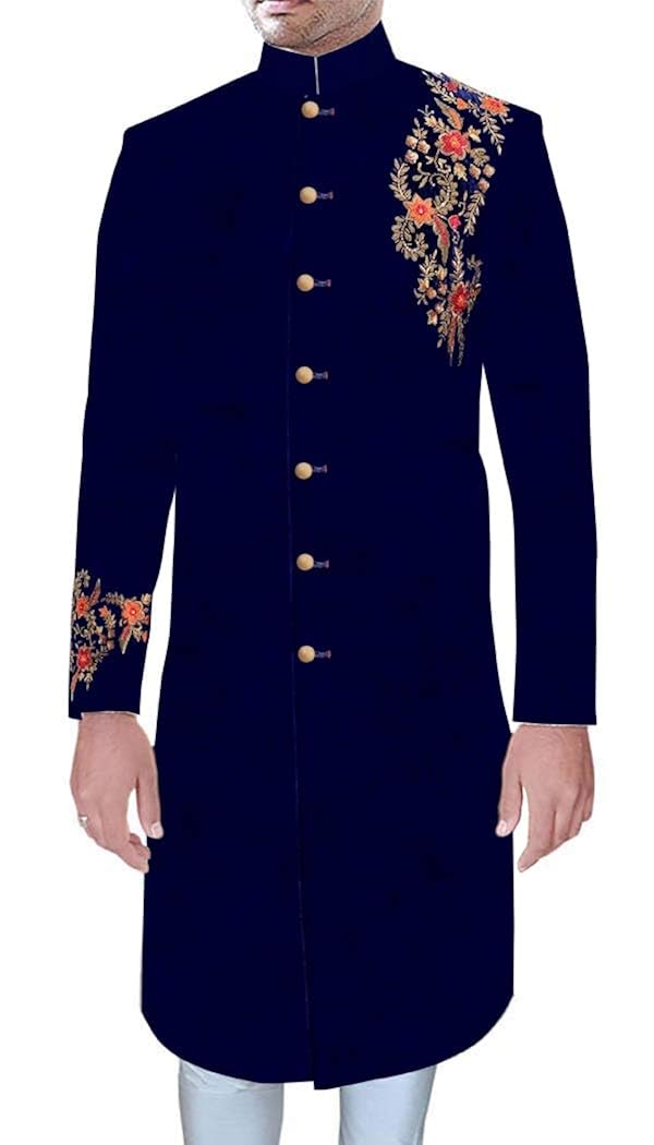 Wedding Blue Velvet Indo Westerns Quality Indowestern Outfits