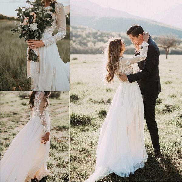 Discount 2019 Elegant Long Sleeves Wedding Dresses O Neck Lace