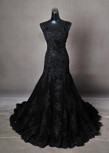 White Rose Gothic Black Wedding Dress Made To Measure Any Size