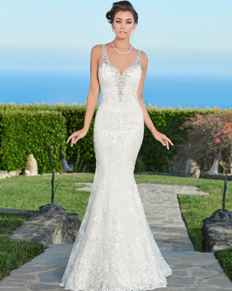 Spaghetti Strap Mermaid Gown With Corset Bodice David S Bridal