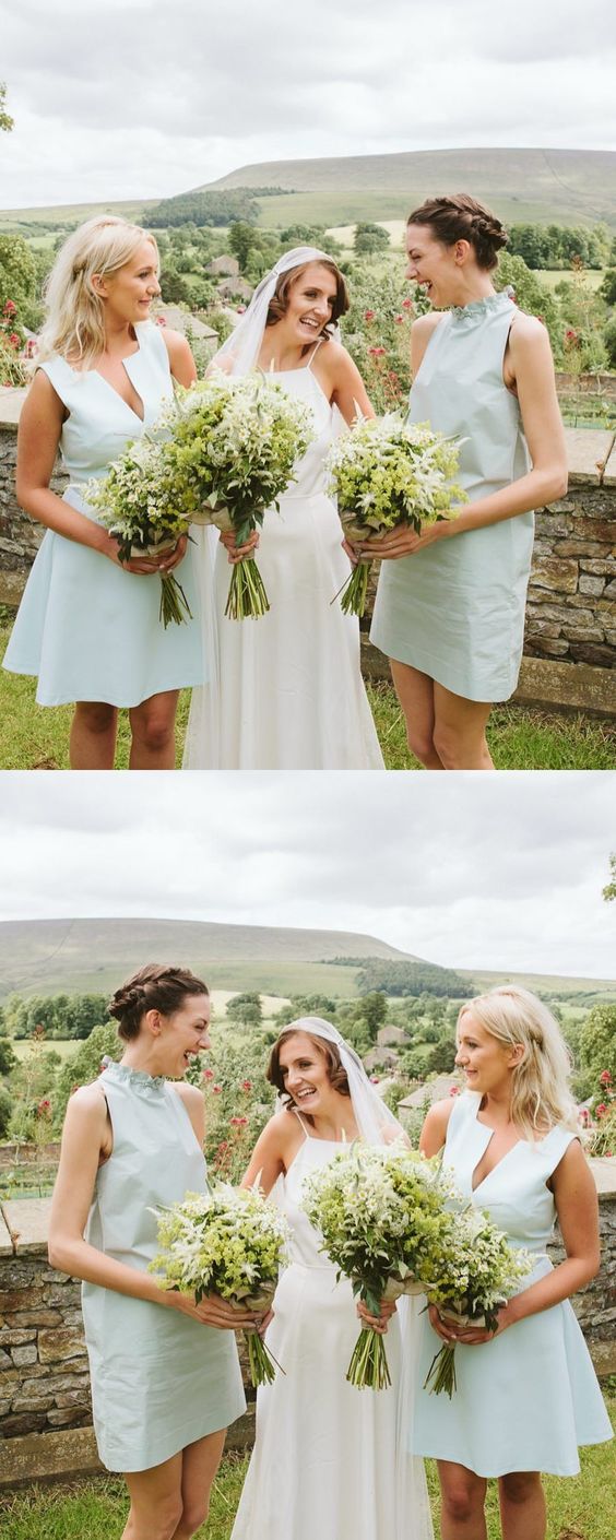 Brides Bridesmaids Photos Short Pale Blue Bridesmaid Dresses