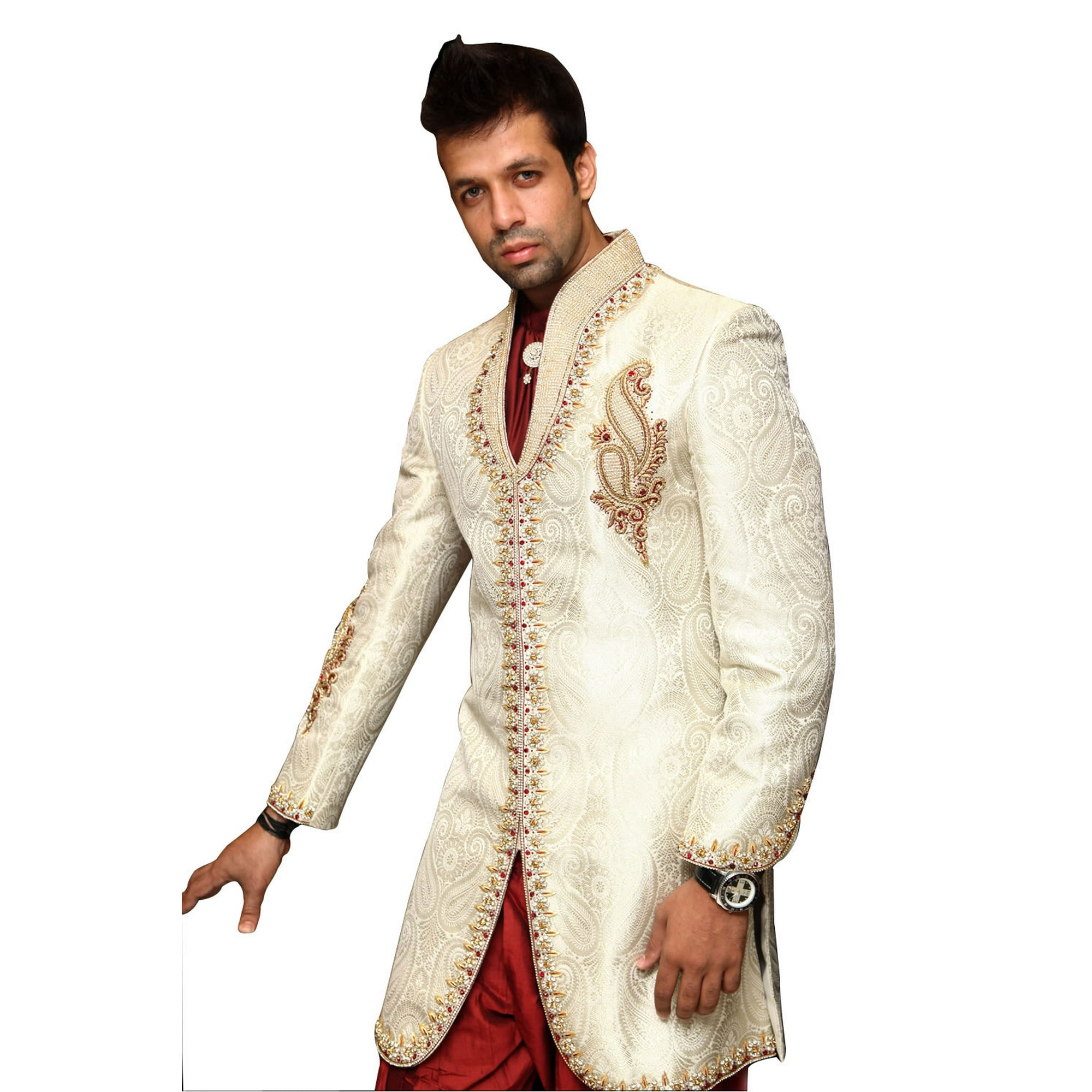 Off White Trendy Indian Wedding Sherwani Kurta Pajama For Men