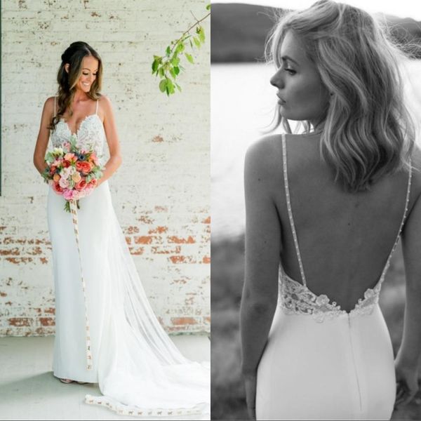 Sexy Spaghetti Open Back Beach Bohemian Wedding Dresses Elegant