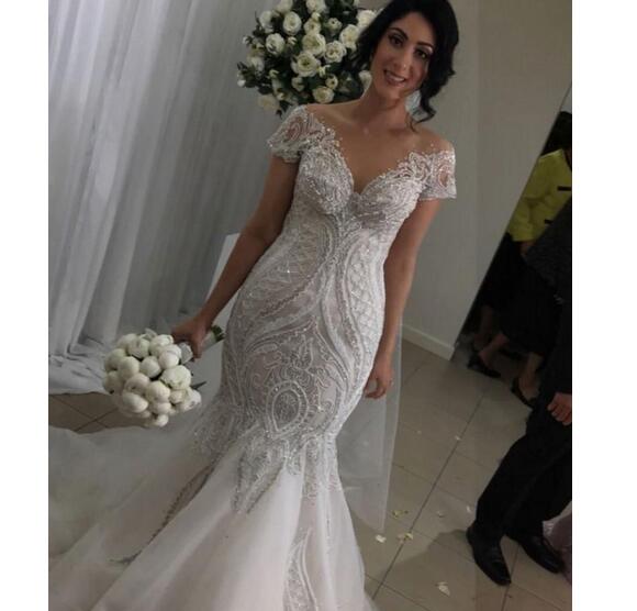 Lace Sheer Long Sleeve Plus Size Mermaid Bridal Gown Lunss